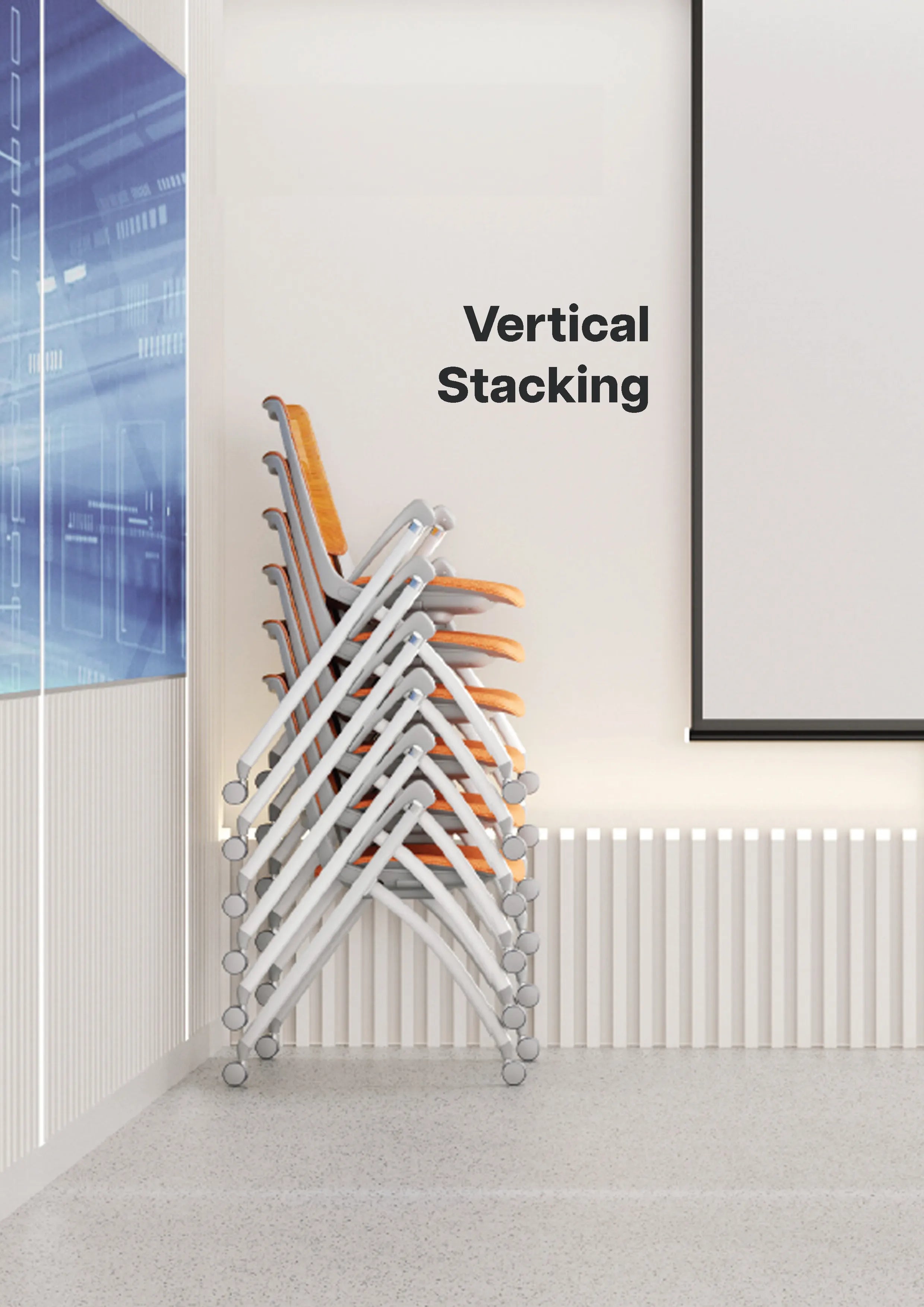 Seats can be folded up to nest chairs together